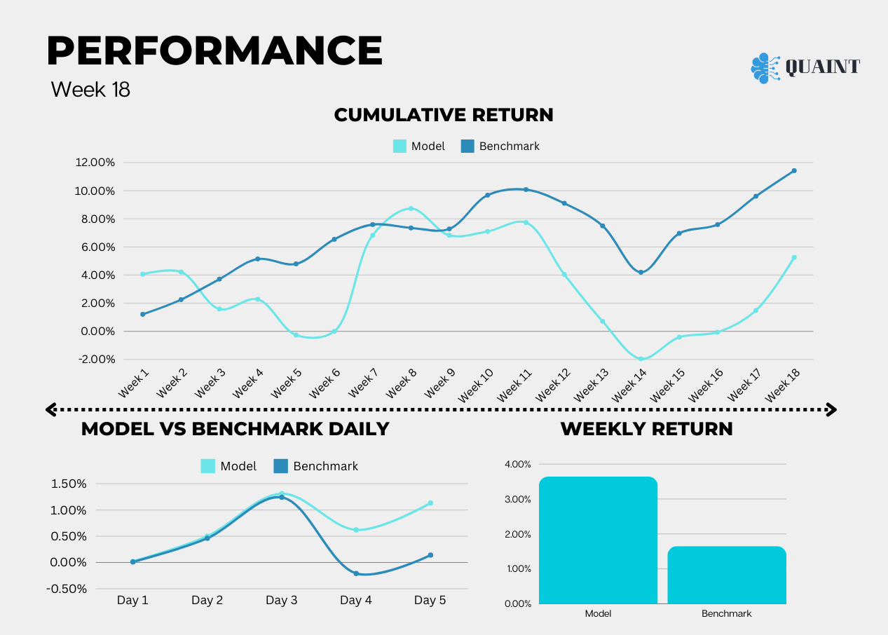 Day 5: Model: +1.13%, Benchmark: +0.14%